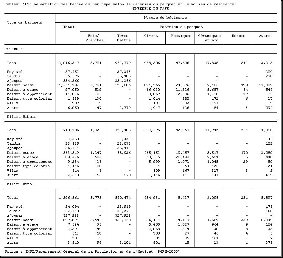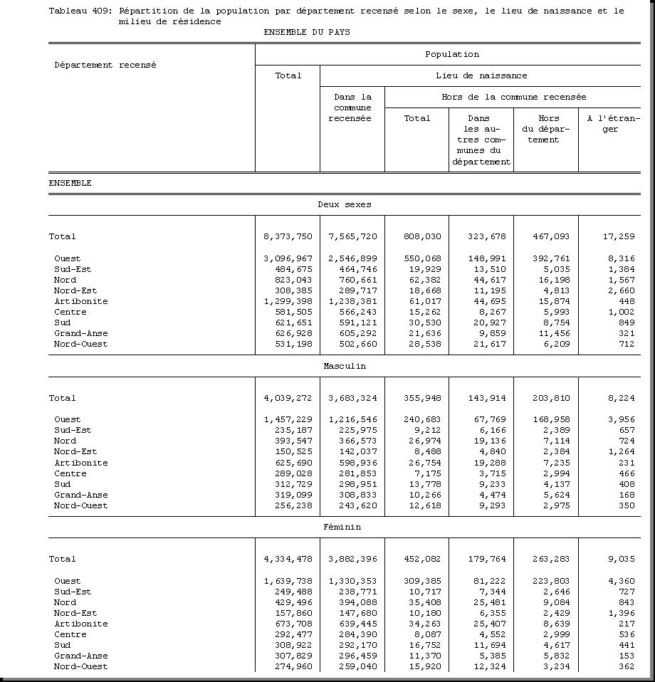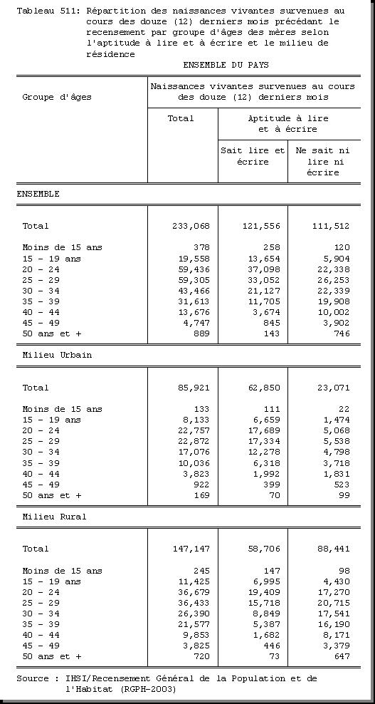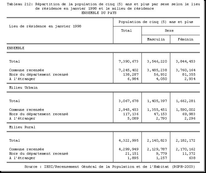TAB-212 : REPARTITION DE LA POPULATION DE CINQ (5) ANS ET PLUS PAR SEXE SELON LE LIEU DE RESIDENCE EN JANVIER 1998 ET LE MILIEU DE RESIDENCE |