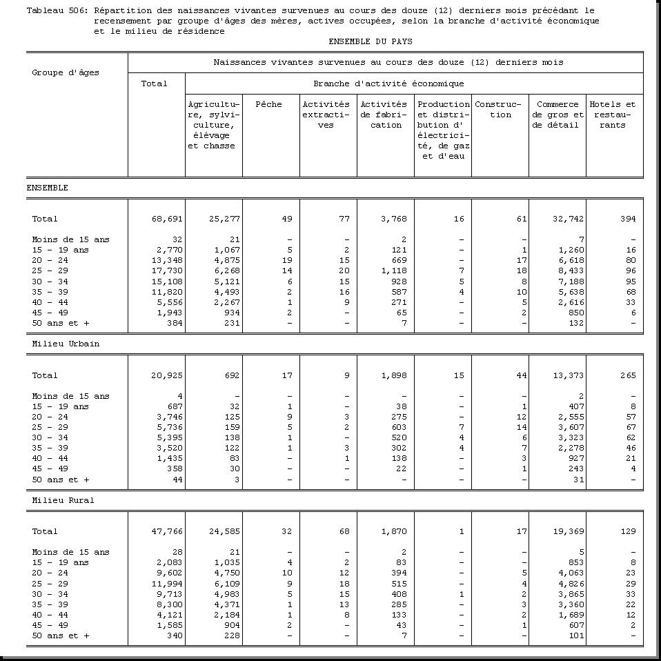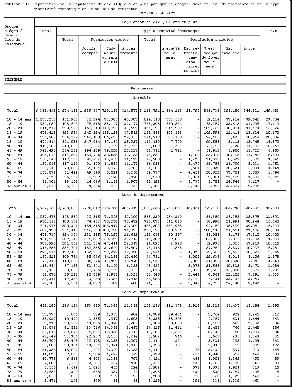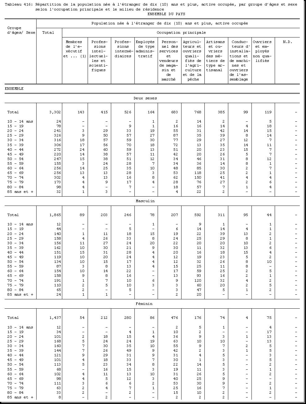 TAB-201 : REPARTITION DE LA POPULATION PAR GROUPE D'AGES SELON LE SEXE ET LE MILIEU DE RESIDENCE |