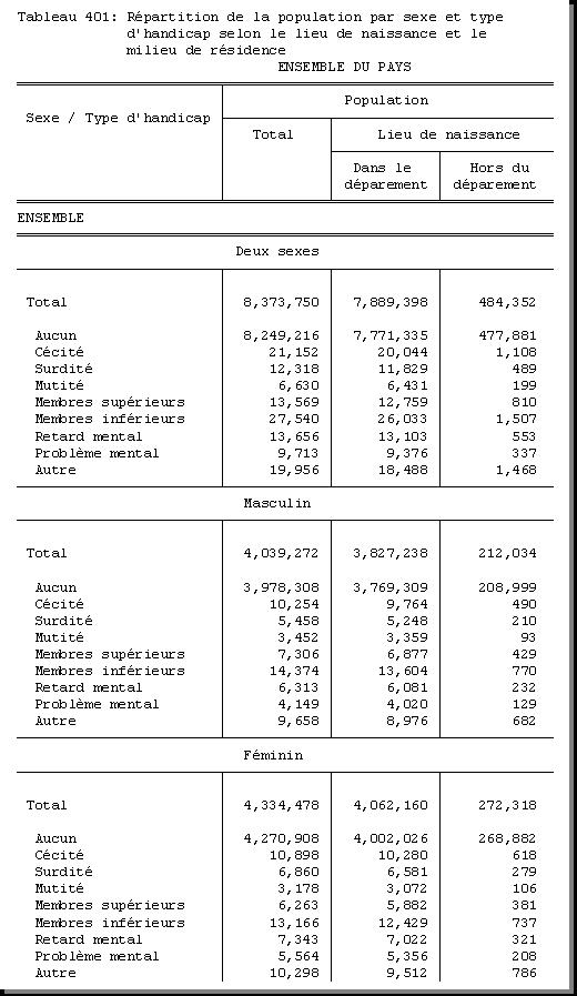 AGE : F1.5, SEXE : F1.4, NATURE DE L'HANDICAP : F1.10, MILIEU DE RESIDENCE : A4 |