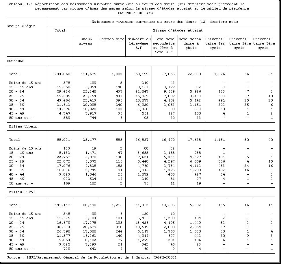 AGE : F1.5, SEXE : F1.4, LIEU DE NAISSANCE : F1.11, MILIEU DE RESIDENCE : A4 |